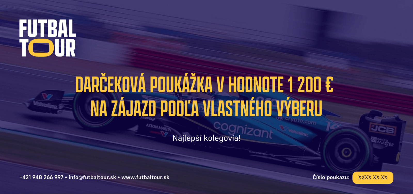 Objednajte si poukážku a my ju prispôsobíme podľa vás – venovanie, logo, obľúbený hráč či štadión v klubových farbách. Dizajn je bez príplatku. Po úhrade doručíme hotové PDF e-mailom alebo vytlačené poštou.